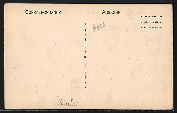 Personenbezogene Daten auf der Rückseite der Karte wurden durch blauen Textmarker unkenntlich gemacht. Die blauen Stellen sind auf die Vorderseite durchgeweicht und wirken sich negativ auf das Postkartenfoto aus