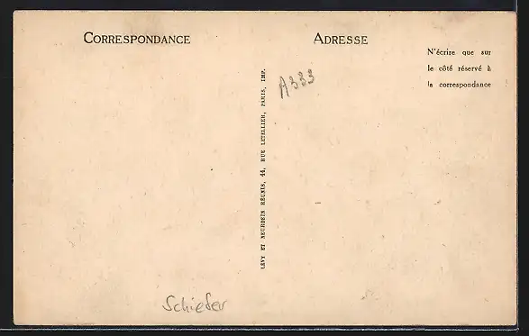 Personenbezogene Daten auf der Rückseite der Karte wurden durch blauen Textmarker unkenntlich gemacht. Die blauen Stellen sind auf die Vorderseite durchgeweicht und wirken sich negativ auf das Postkartenfoto aus