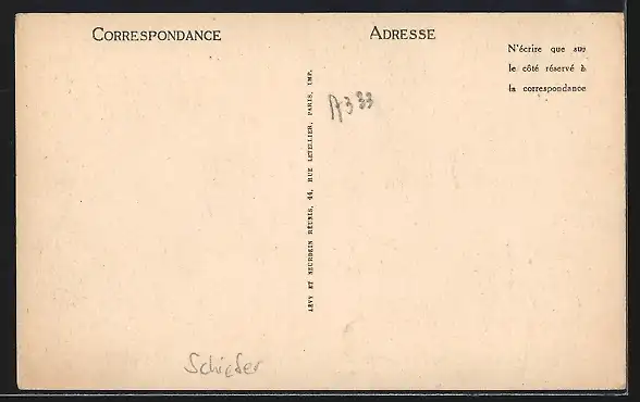 Personenbezogene Daten auf der Rückseite der Karte wurden durch blauen Textmarker unkenntlich gemacht. Die blauen Stellen sind auf die Vorderseite durchgeweicht und wirken sich negativ auf das Postkartenfoto aus