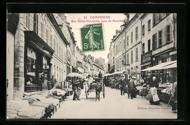 AK Compiegne, Rue Saint-Corneille, jour de Marché