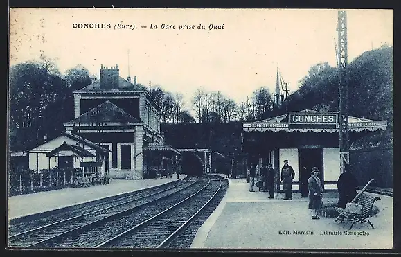 AK Conches, La Gare prise du Quai