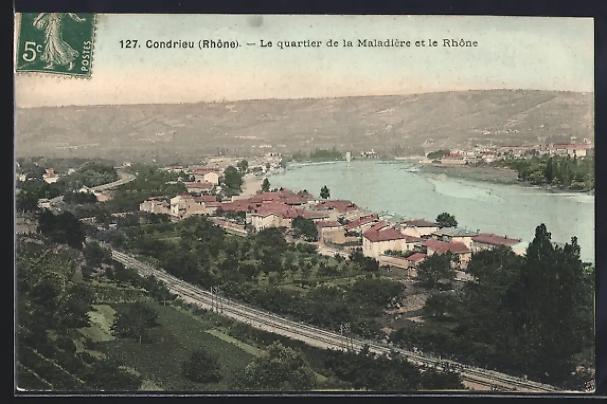 AK Condrieu /Rhône, Le quartier de la Maladière et le Rhône