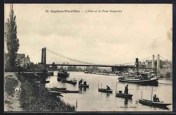 AK Conflans-Fin-d`Oise, L`Oise et le Pont Suspendu