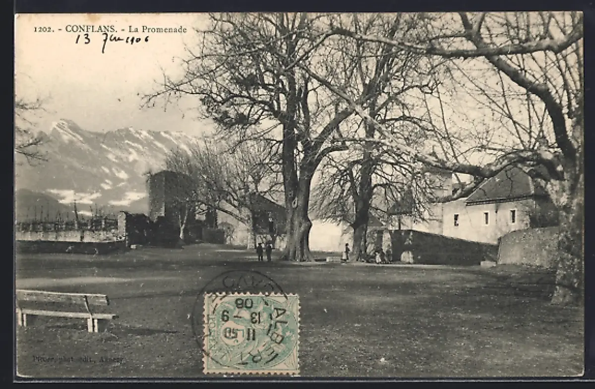 AK Conflans, La Promenade avec vue sur les montagnes en arrière-plan