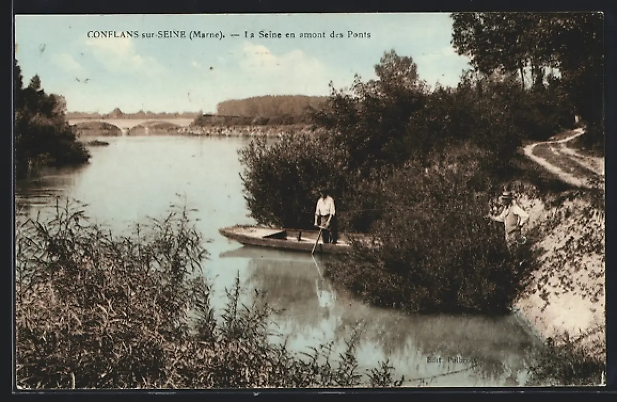 AK Conflans-sur-Seine, la Seine en amont des Ponts