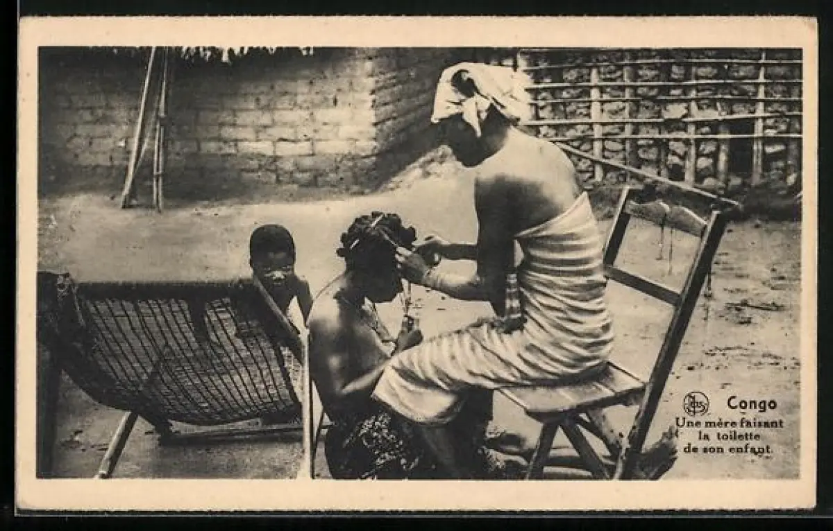 AK Congo, Une Mére faisant la toilette de son enfant, Afrikanerinnen bei Haarpflege