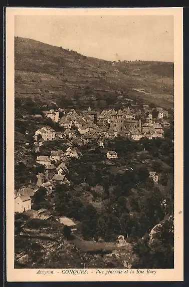 AK Conques /Aveyron, Vue générale et la Rue Bary