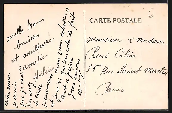 Personenbezogene Daten auf der Rückseite der Karte wurden durch blauen Textmarker unkenntlich gemacht. Die blauen Stellen sind auf die Vorderseite durchgeweicht und wirken sich negativ auf das Postkartenfoto aus