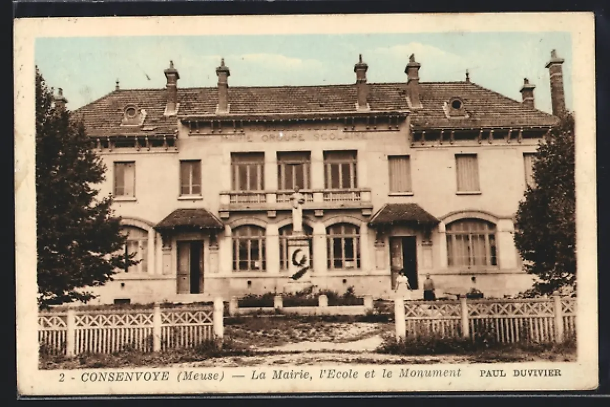 AK Consenvoye /Meuse, La Mairie, l`École et le Monument