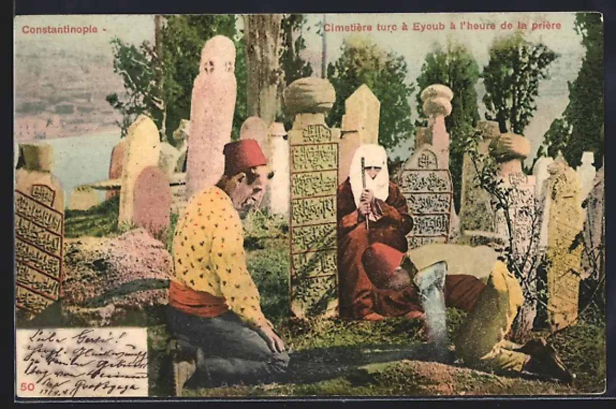 AK Constantinople, Cimetière turc à Eyoub à l`heure de la prière