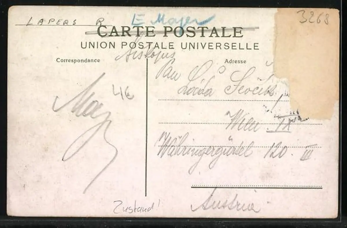 alte Ansichtskarte, gelaufen, Briefmarke entfernt, rückseitig Oberflächenschaden, Bugspur li. oben