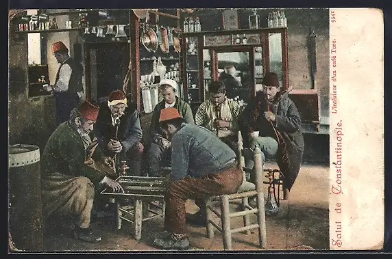 AK Constantinople / Istanbul, L`Interieur d`un café Turc, Türken rauchen Wasserpfeife