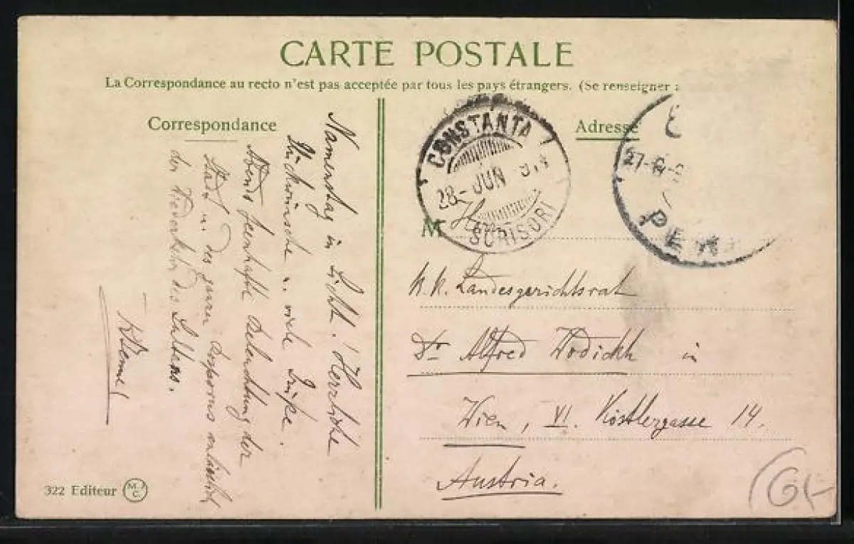 alte Ansichtskarte, gelaufen, Briefmarke entfernt, rückseitig Oberflächenschaden, guter Zustand