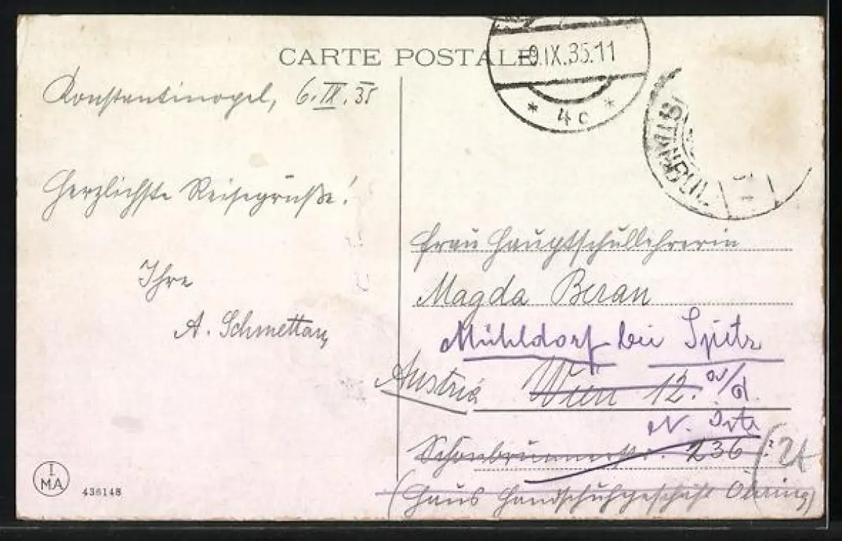 alte Ansichtskarte, gelaufen 1935, Briefmarke entfernt, Eckknick re. oben, guter Zustand