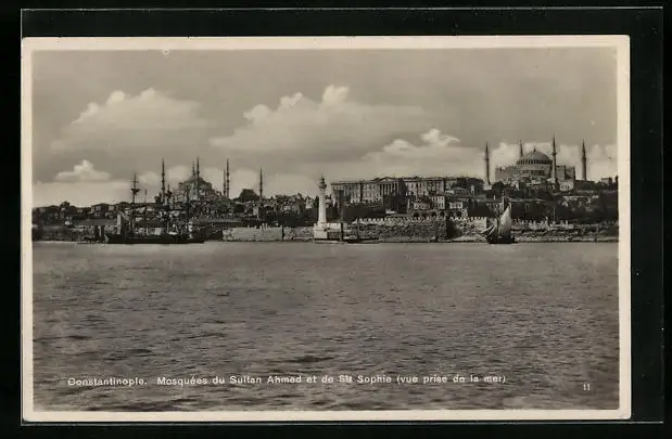 AK Constantinople, Mosquees du Sultan Ahmed et de Sta. Sophie, Vue prise de la mer