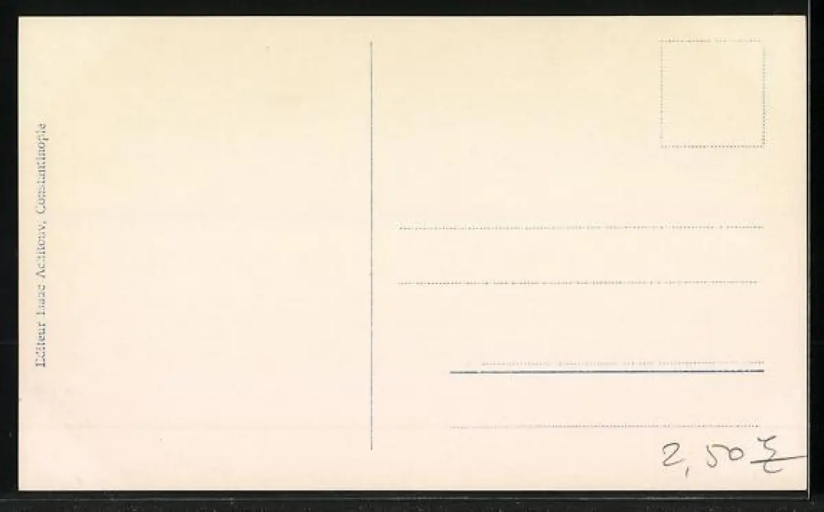 Personenbezogene Daten auf der Rückseite der Karte wurden durch blauen Textmarker unkenntlich gemacht. Die blauen Stellen sind auf die Vorderseite durchgeweicht und wirken sich negativ auf das Postkartenfoto aus