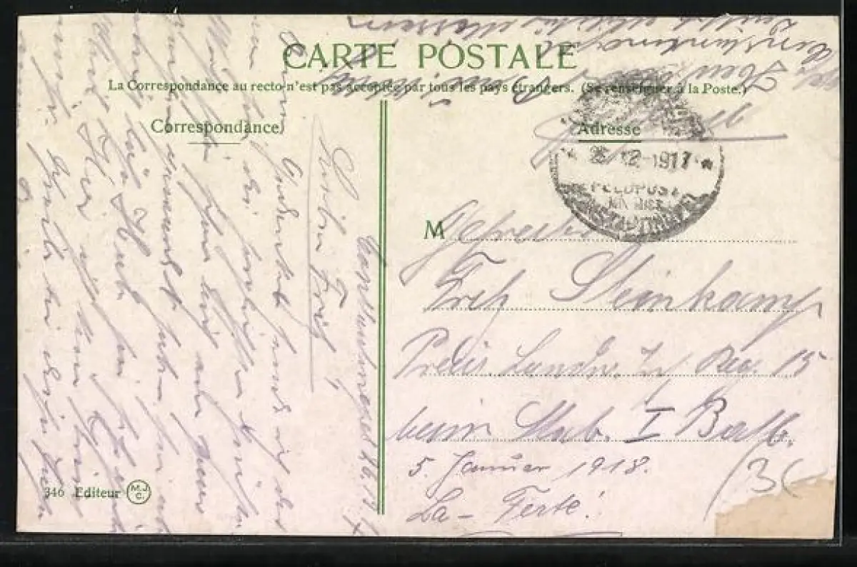 alte Ansichtskarte, gelaufen 1917, rückseitig Oberflächenschaden, linke u. obere Kante beschnitten