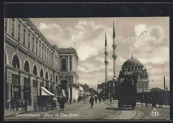 AK Constantinople, Place de Top-Hané, Strassenbahn