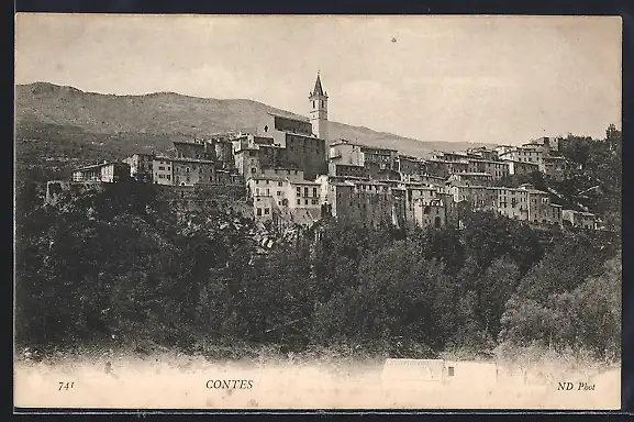 AK Contes, Vue générale du village sur la colline