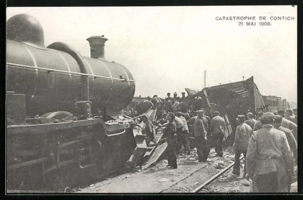 AK Contich, Trümmer der Eisenbahn nach der Eisenbahnkatastrophe 1908