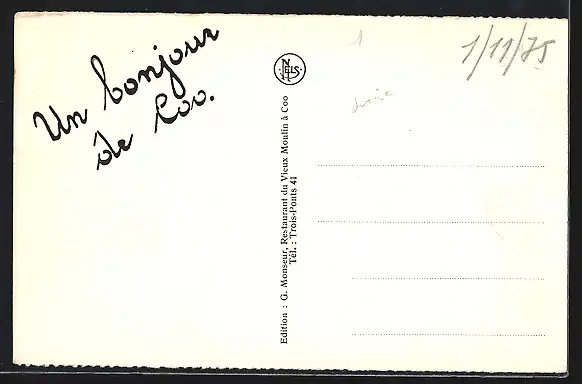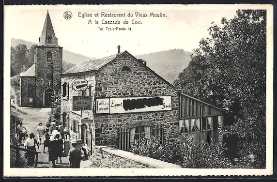 AK Coo, Eglise et Restaurant du Vieux Moulin, A la Cascade de Coo