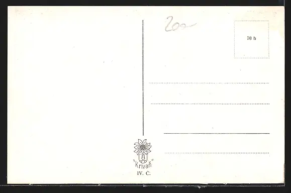 Personenbezogene Daten auf der Rückseite der Karte wurden durch blauen Textmarker unkenntlich gemacht. Die blauen Stellen sind auf die Vorderseite durchgeweicht und wirken sich negativ auf das Postkartenfoto aus