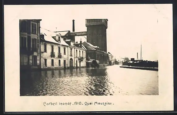 AK Corbeil, Inondations de 1910, Quai Mauzaise