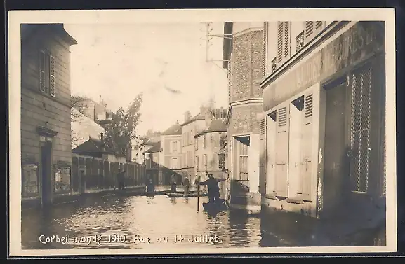 AK Corbeil, Inondations de 1910, Rue du 14 Juillet