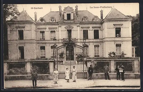 AK Corbeil, La Sous-Préfecture avec grille et visiteurs devant l`entrée
