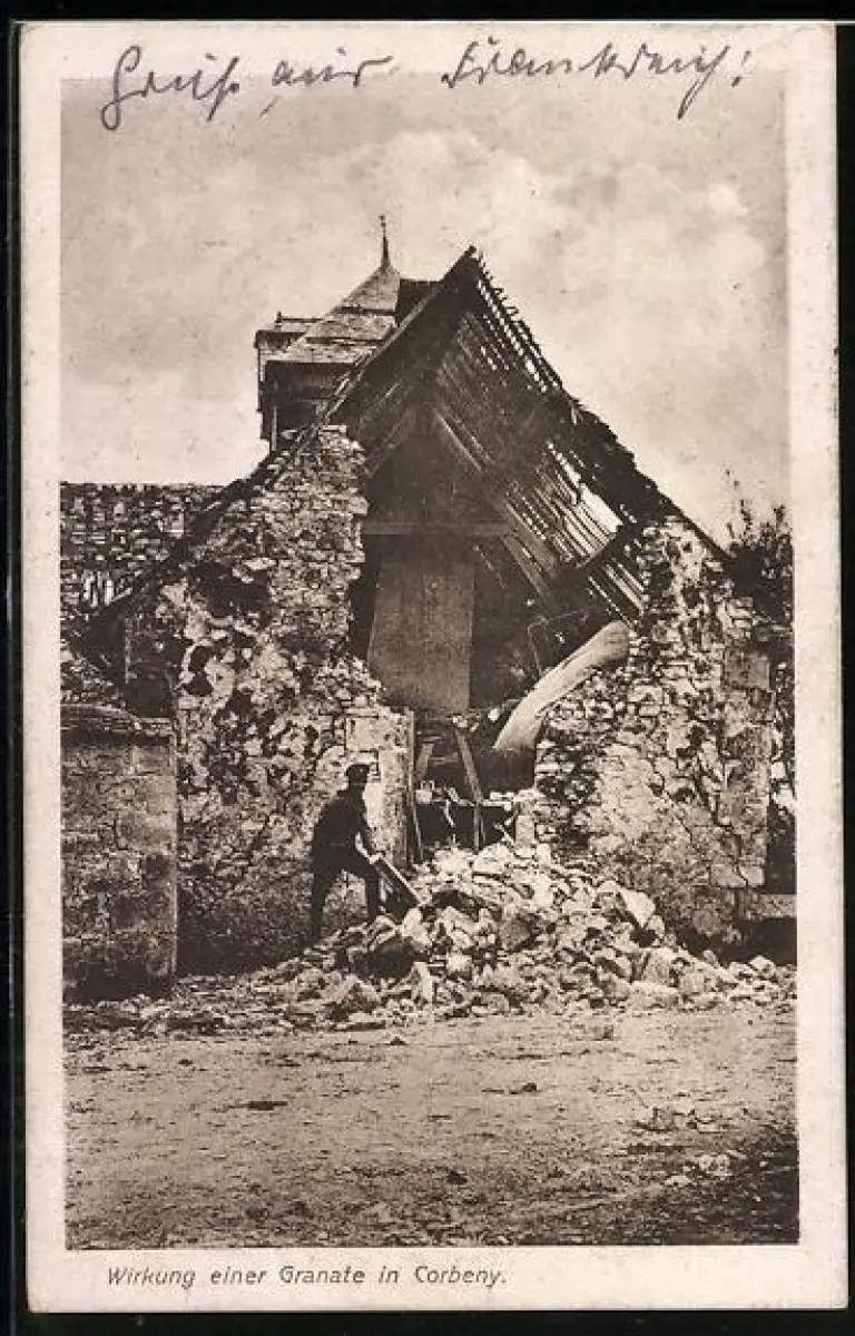 AK Corbeny, Durch eine Granate zerstörtes Haus