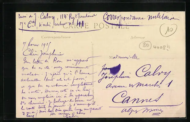 Personenbezogene Daten auf der Rückseite der Karte wurden durch blauen Textmarker unkenntlich gemacht. Die blauen Stellen sind auf die Vorderseite durchgeweicht und wirken sich negativ auf das Postkartenfoto aus