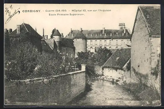 AK Corbigny, Hôpital 63 et École Primaire Supérieure avec vue sur l`Anguison
