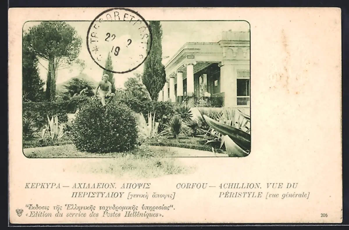 AK Corfou, Achillion, Vue du péristyle