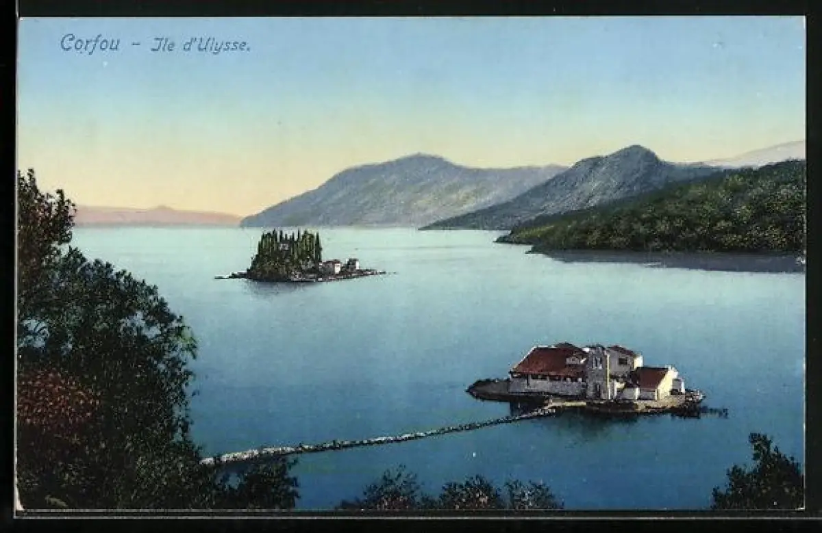 AK Corfou, Ile d`Ulysse, Panorama mit Toteninsel