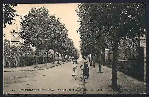 AK Cormeilles-en-Parisis, Le Boulevard de l`Ouest avec passants et arbres alignés