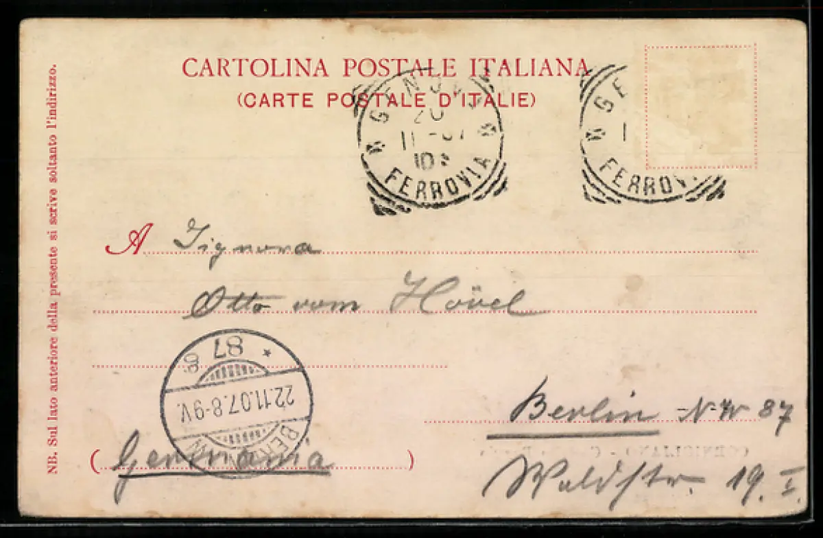 alte Ansichtskarte, gelaufen 1907, Briefmarke entfernt, guter Zustand