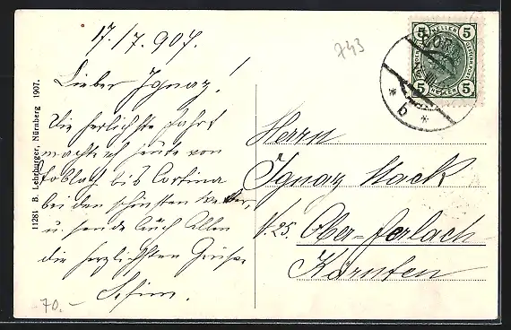 alte Ansichtskarte, gelaufen 1907, Stempelspur, guter Zustand
