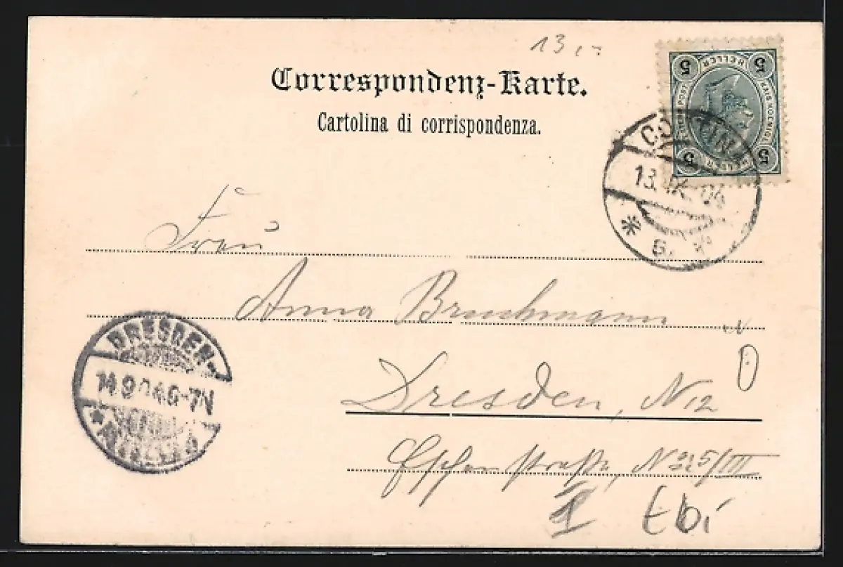 alte Ansichtskarte, gelaufen 1904, Stempelspur, guter Zustand