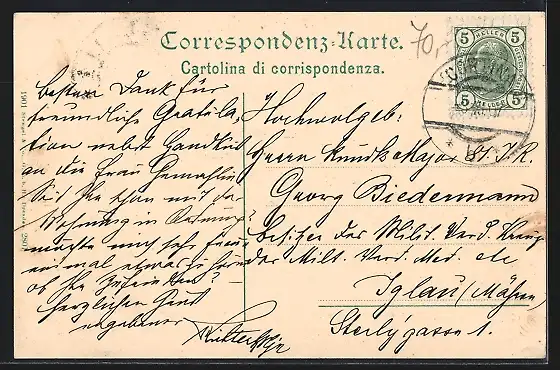 alte Ansichtskarte, gelaufen 1907, Stempelspur, guter Zustand