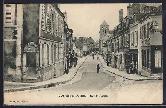 AK Cosne-sur-Loire, Rue St-Agnan animée avec passants et architecture historique