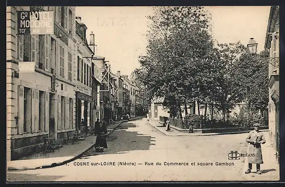 AK Cosne-sur-Loire, Rue du Commerce et square Gambon