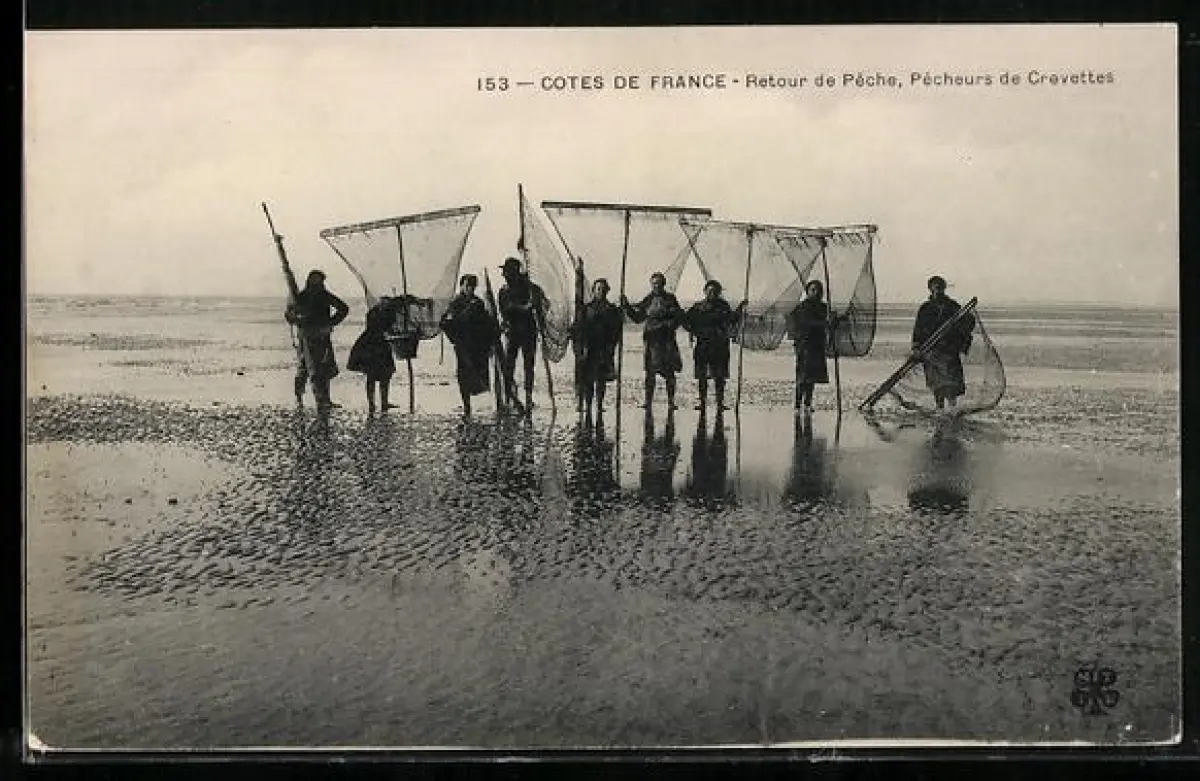 AK Cotes de France, Retour de Pêche, Pêcheurs de Crevettes, Krebsfischer
