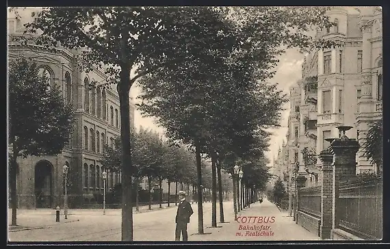 AK Cottbus, Bahnhofstrasse mit Realschule