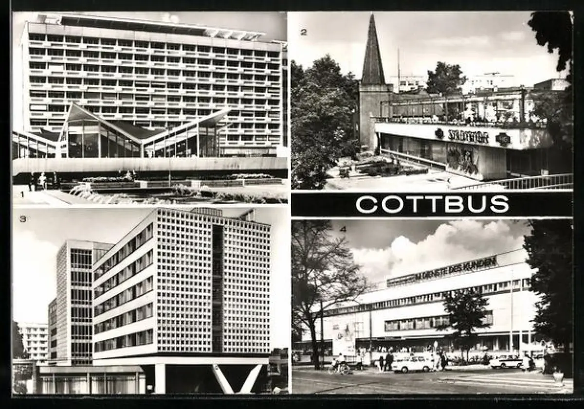 AK Cottbus, HO-Gaststätte Am Stadttor, Hotel Lausitz, Konsument-Warenhaus