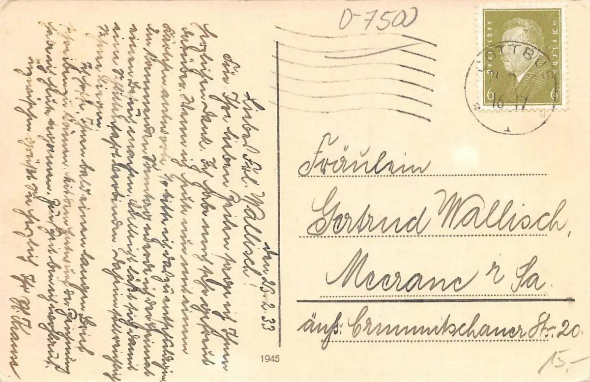 Rückseite: gelaufen 1933
