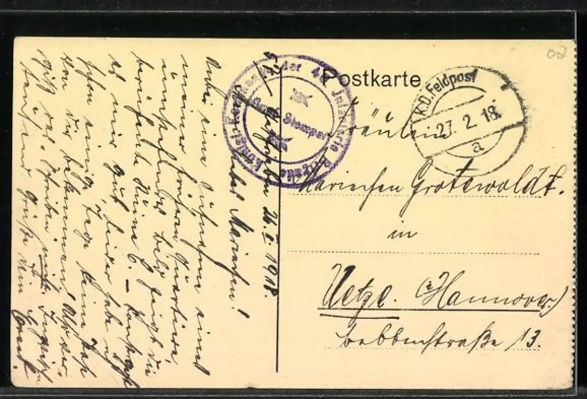 alte Ansichtskarte, gelaufen 1918, Eckknick unten rechts, guter Zustand