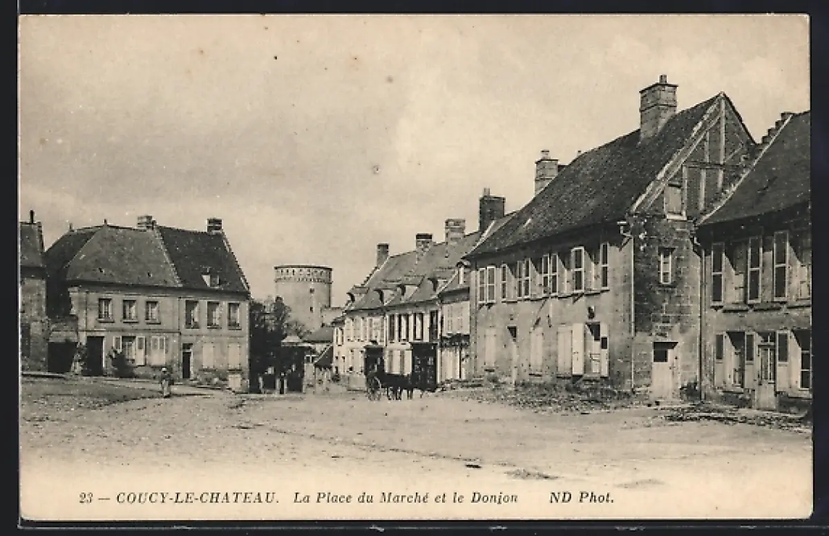 AK Coucy-le-Château, La Place du Marché et le Donjon