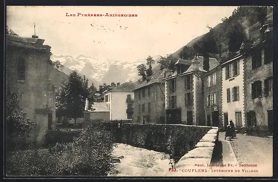 AK Couflens, Intérieur du village avec vue sur les montagnes des Pyrénées-Ariegeoises