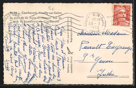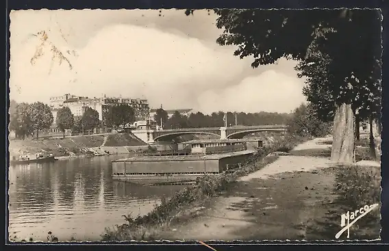 AK Courbevoie-Neuilly-sur-Seine, Le pont et les bains C. Masson vus du quai du boulevard de Courbevoie