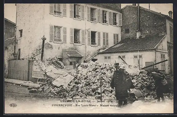AK Courbevoie, Rue Louis-Blanc, Maison écroulée lors de la crue de la Seine, janvier 1910